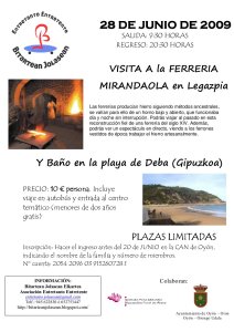 1 junio, 200915 mayo, 2019 entretantoentretente Excursión a la Ferrería de Mirandaola en legazpia y a la playa de Deba el 28 de junio de 2009 Compártelo: Haz clic para compartir en X (Se abre en una ventana nueva) X Haz clic para compartir en Facebook (Se abre en una ventana nueva) Facebook Me gusta Cargando... Relacionado