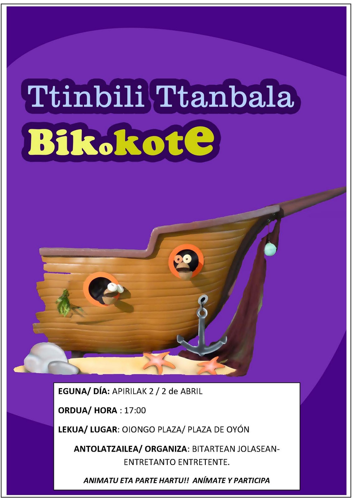 Habrá teatro y diferentes talleres. El teatro corre a cargo del grupo Ttinbili Ttanbala.