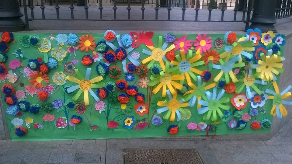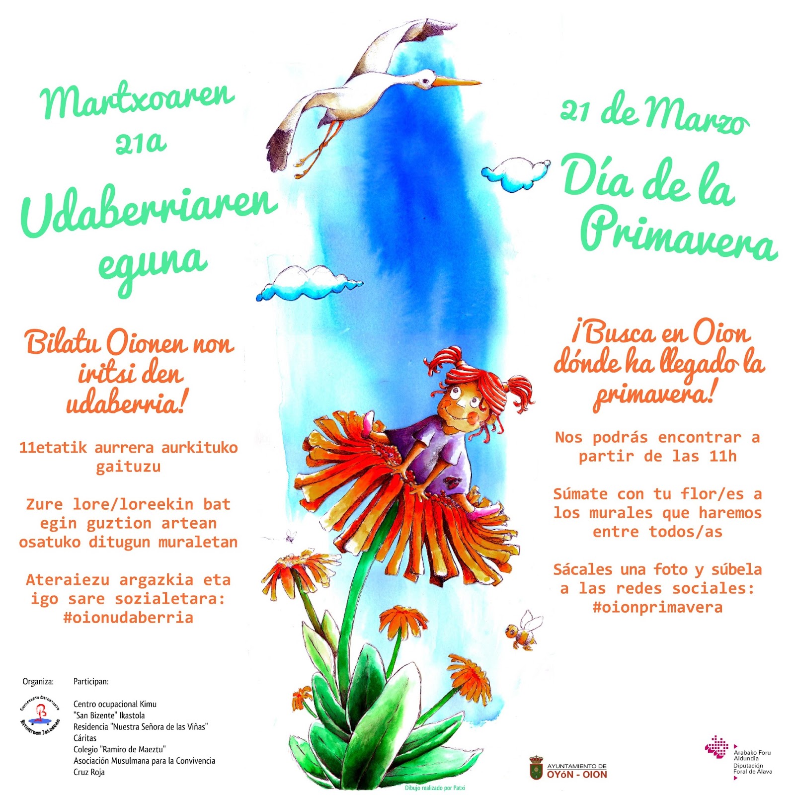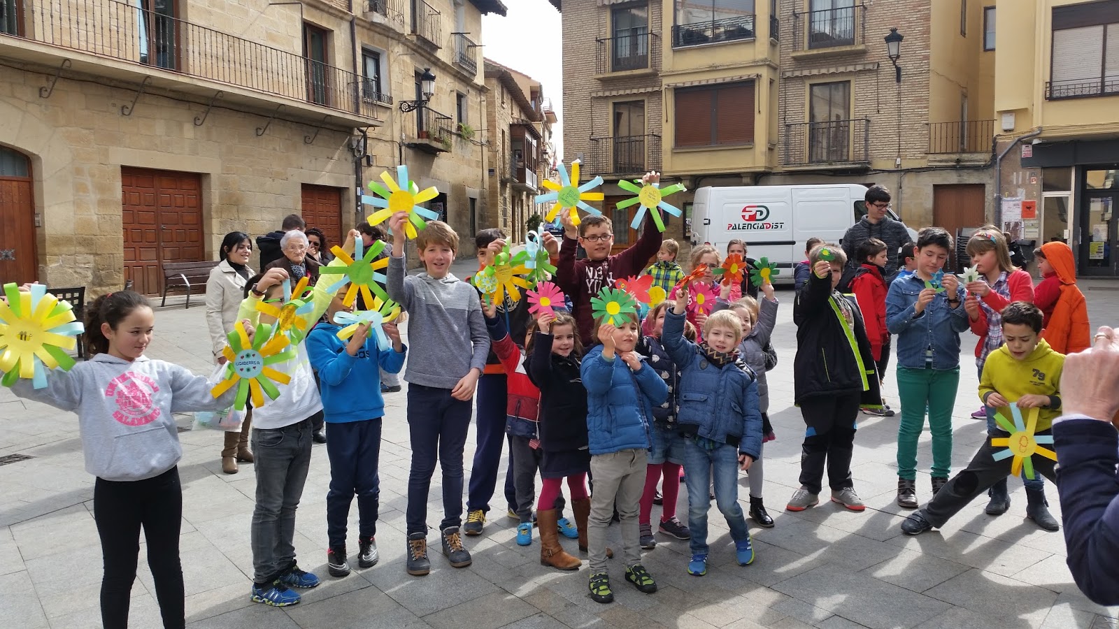 El 21 de marzo, en varias zonas de Oion, organizamos con otras entidades la creación de murales para celebrar la venida la Primavera. Participaron el Colegio Ramiro de Maeztu, Cruz Roja, San Bizente Ikastola, la residencia «Nuestra Señora de las Viñas», la Asociación Musulmana para la Convivencia y Cáritas.