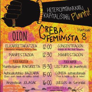 Martxoaren 8an emakume, trans eta bollerok lan guztiak, soldatapeko zein doako lanak, egitaeri utzi eta kaleak hartuko ditugu. Greba feministak bizitzakoe esparru gustiei aurre egiten die, indarkeriari, parekidetasun ezari, prekarietateari, sexualitate eredu hegemonikoei, lanen sexualitate araberako banaketari, kontsumo ereduari, familia patriarkalari, jakintzen hierarkizazioari, arrazakeriari, edertaasun kanonari era zapalkuntza guztiei.