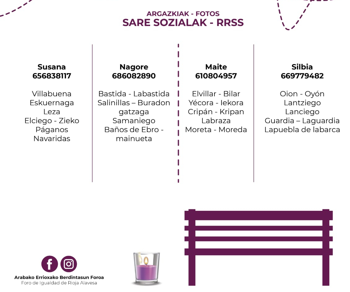 Este año, con el hilo conductor “25N PONLE LUZ – EMAIOZU ARGIA A25 – 2020”, hay muchas y variadas propuestas que se van a desarrollar simultáneamente en todos los pueblos de la Cuadrilla de Rioja Alavesa.