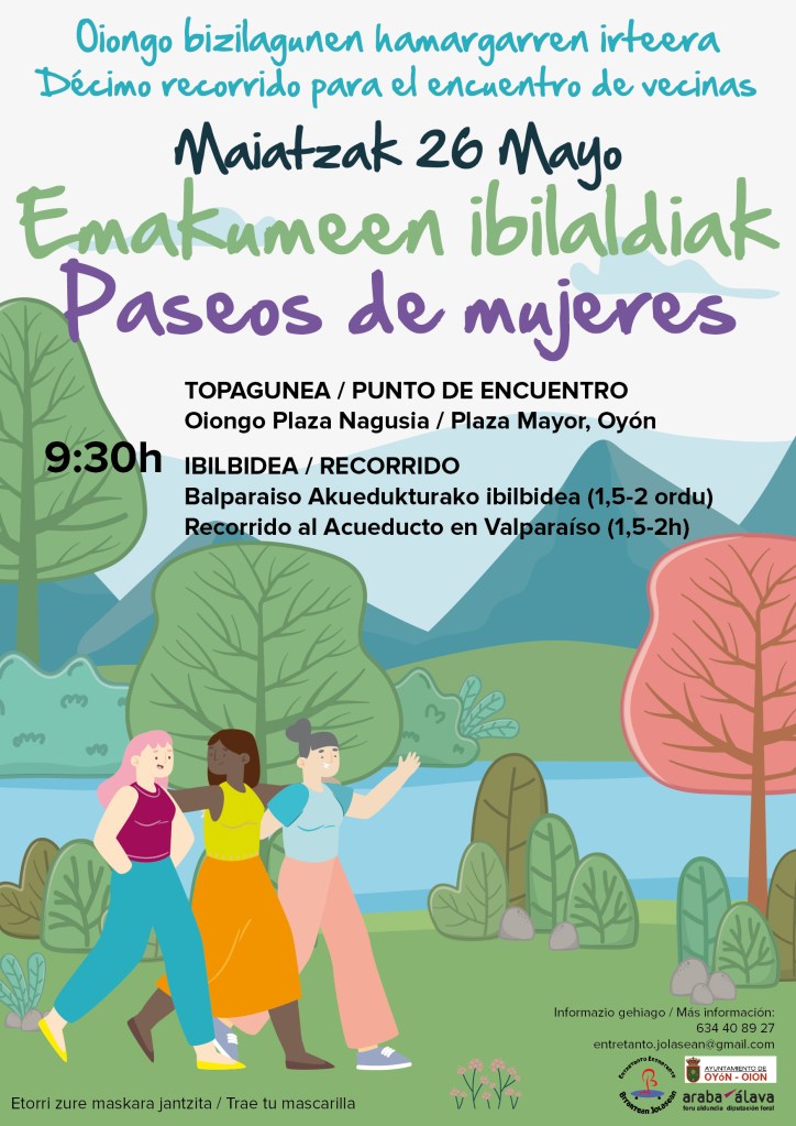 Os animamos a que participéis en esta actividad segura, divertida y saludable. Nos lo pasamos bien, compartimos un tiempo juntas y además conocemos lugares que nos hablan de la historia de Oyón-Oion. Saldremos de la Plaza del pueblo a las 9:30 h. ¡Animaos chicas!