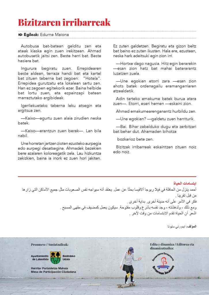 Buletin honetan, gaztelania, euskara eta arabiera buletin berean integratuta egotearen aldeko apustua egin da.