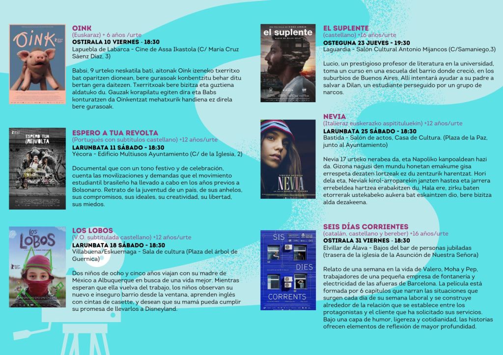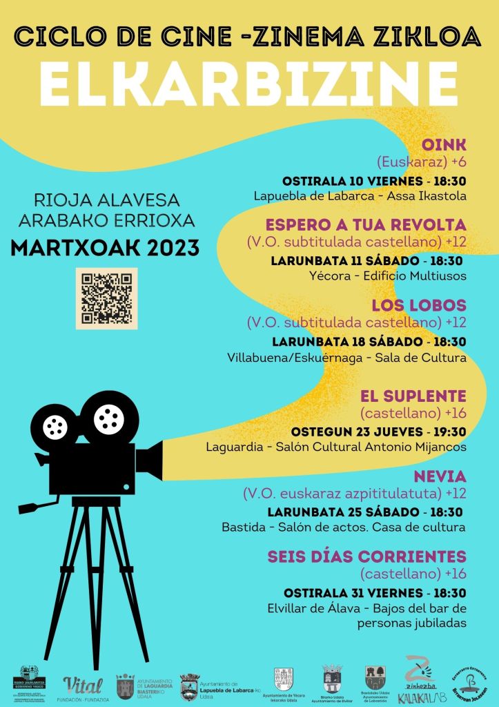 Damos las gracias a los Ayuntamientos que se han sumado a esta iniciativa territorial que creemos enriquece la oferta cultural de estos meses de invierno en RA y os animamos a que participéis de todo el ciclo, pues la propuesta es diversa en temáticas, géneros cinematográficos, lenguas, públicos…
