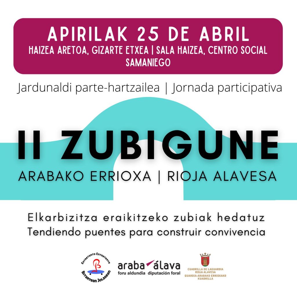 Duela urtebete elkartu ginen bertan parte hartu zenuten guztiek inspiratu zuten topaketa batean. Kontatu nahi dizuegu nola igaro den aurten, zer urrats eman diren, eta beste leku batzuetako jardunbide egokiak partekatu, gure herrien eta Koadrillaren garapenean lagunduko duen bizikidetza positiboa eraikitzen jarraitzeko.
