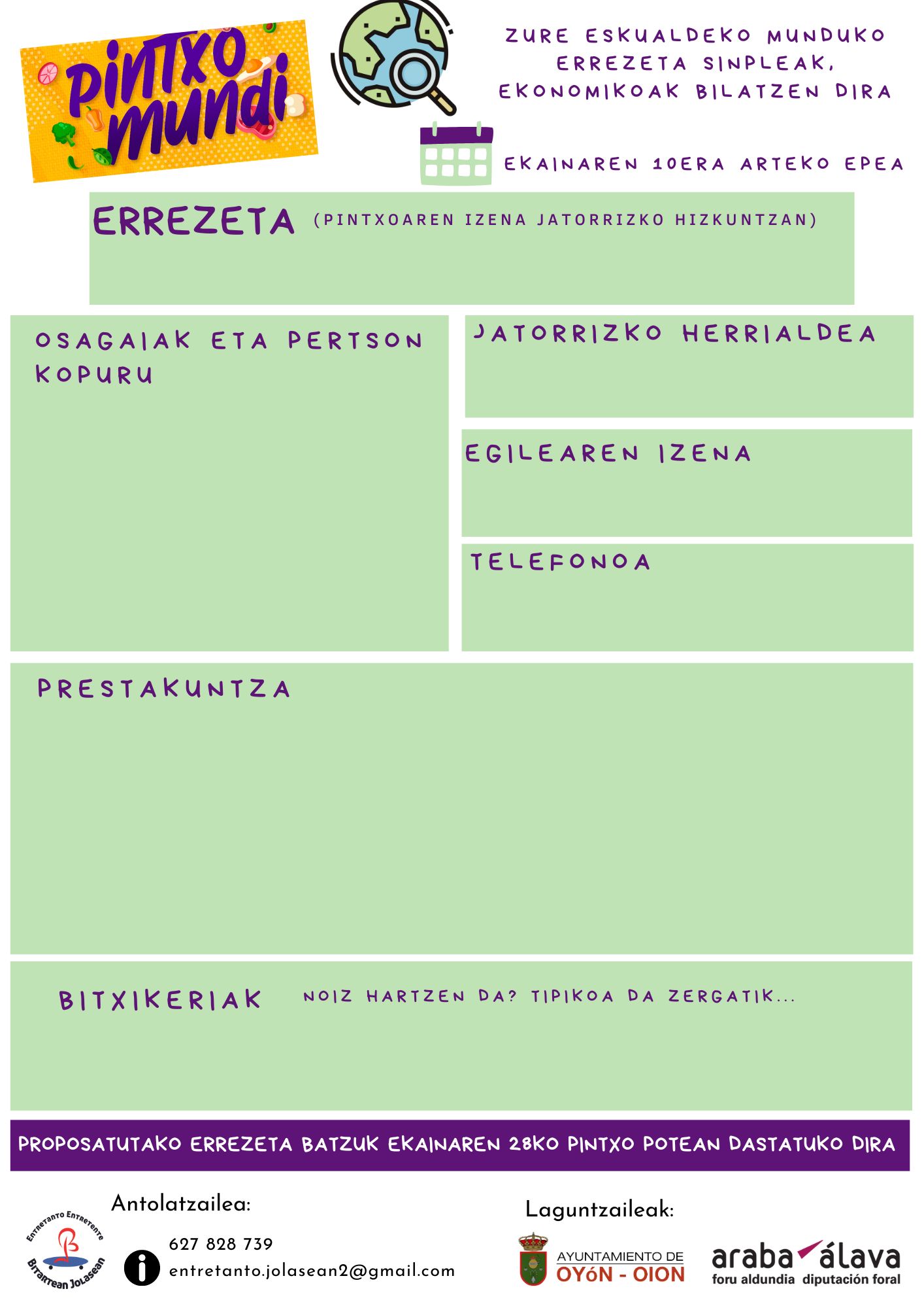 Errezetak proposatzeko epea itxita /
