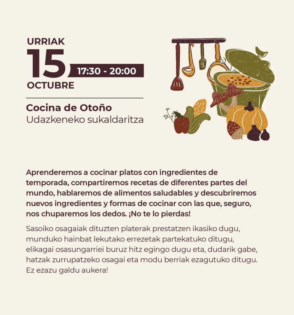 Prest dago Agenda Goxuaren udazkeneko programazioa!! Begirada bat eman eta ez ahaztu izena emateaz, plazak mugatuak baitira!