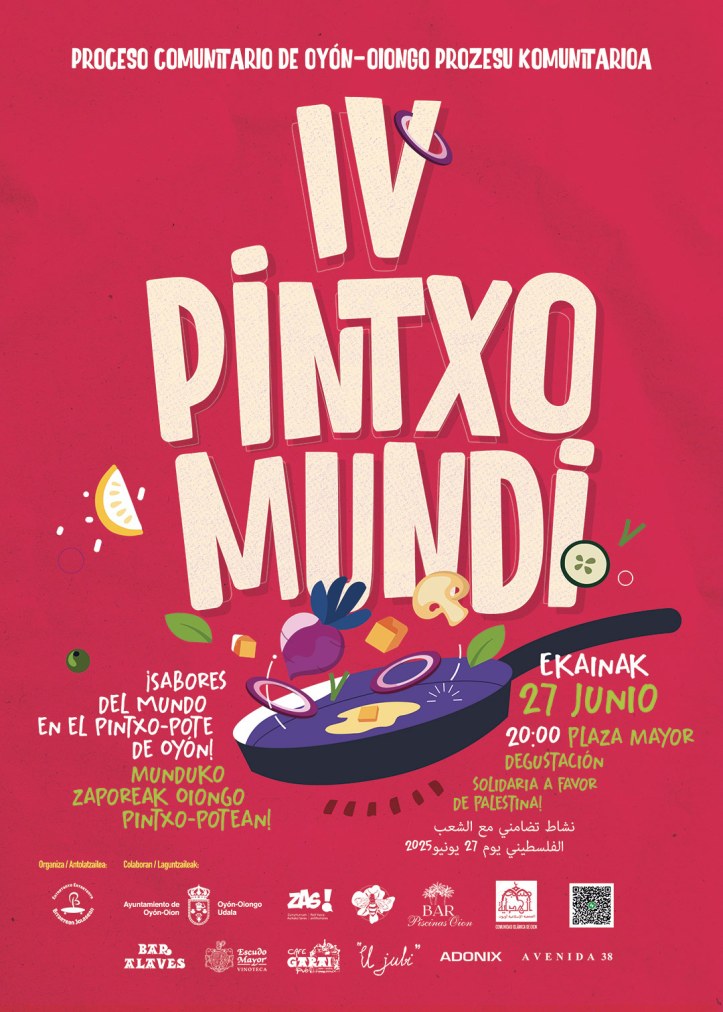 Se acerca el IV ░P░I░N░T░X░O░ ░M░U░N░D░I… así que reserva la fecha. ¡Será el próximo 27 de junio! Una tarde de pintxo-pote en Oion, donde acercarse a la cultura y gastronomía de otros países.