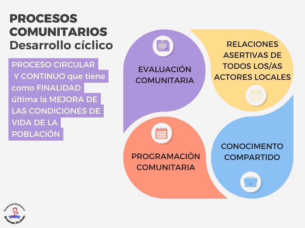 Por ello, la finalidad de la Intervención Comunitaria solo puede ser “la mejora de las condiciones de vida de la población interesada”. Se interpreta como un proceso dialéctico, por las relaciones entre los protagonistas, y dinámico, ya que va evolucionando en el tiempo y en el espacio territorial en el que se produce. No se traduce en un proyecto finalista, es decir, con finalidades pre-definidas. Se trata de un proceso indefinido e inespecífico, ya que parte del principio de que cada comunidad es una realidad particular que debe realizar su propio itinerario de desarrollo, diferente de cualquier otro. Será el mismo proceso participativo y comunitario el que vaya a determinar este recorrido, sus finalidades y sus prioridades. La idea de ‘proceso’ resulta, por lo tanto, no solo innovadora, sino también, potencialmente ‘rompedora’ de la situación existente en el territorio.